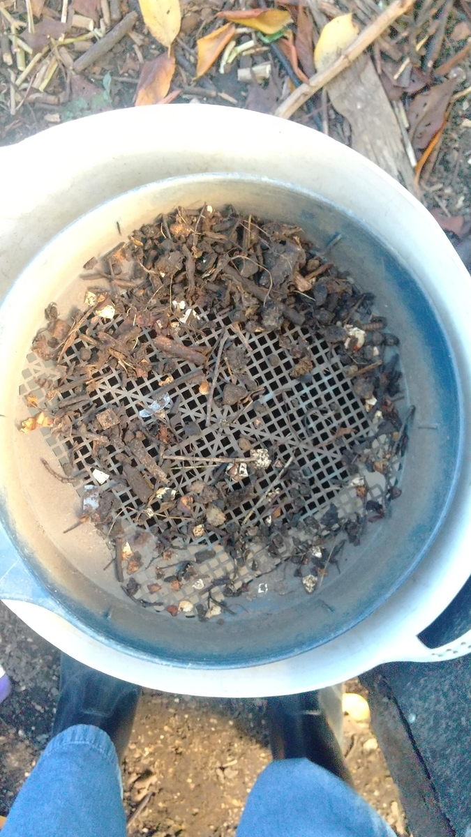 ある一つの植物の栽培が終わっても、根っこから抜いて、土を耕すということはしません。栽培終了の植物は、根元で切ります。根は土の中に残します。残った根はミミズや微生物によって時間をかけて分解されます。ミミズや微生物が根を食べて排泄物を出すことで、分解、すなわち、植物が根から栄養を吸い取ることができるかたちになります。